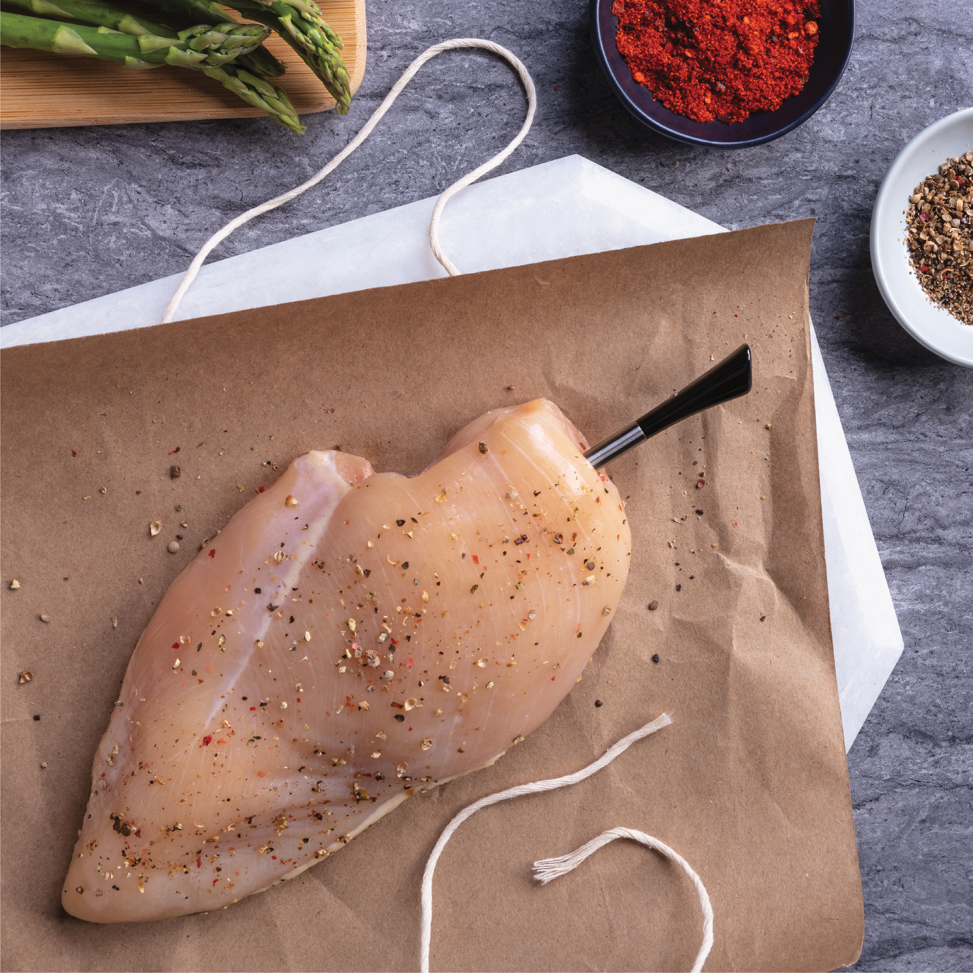 - Set custom alerts or use pre-programmed temperatures for various meats